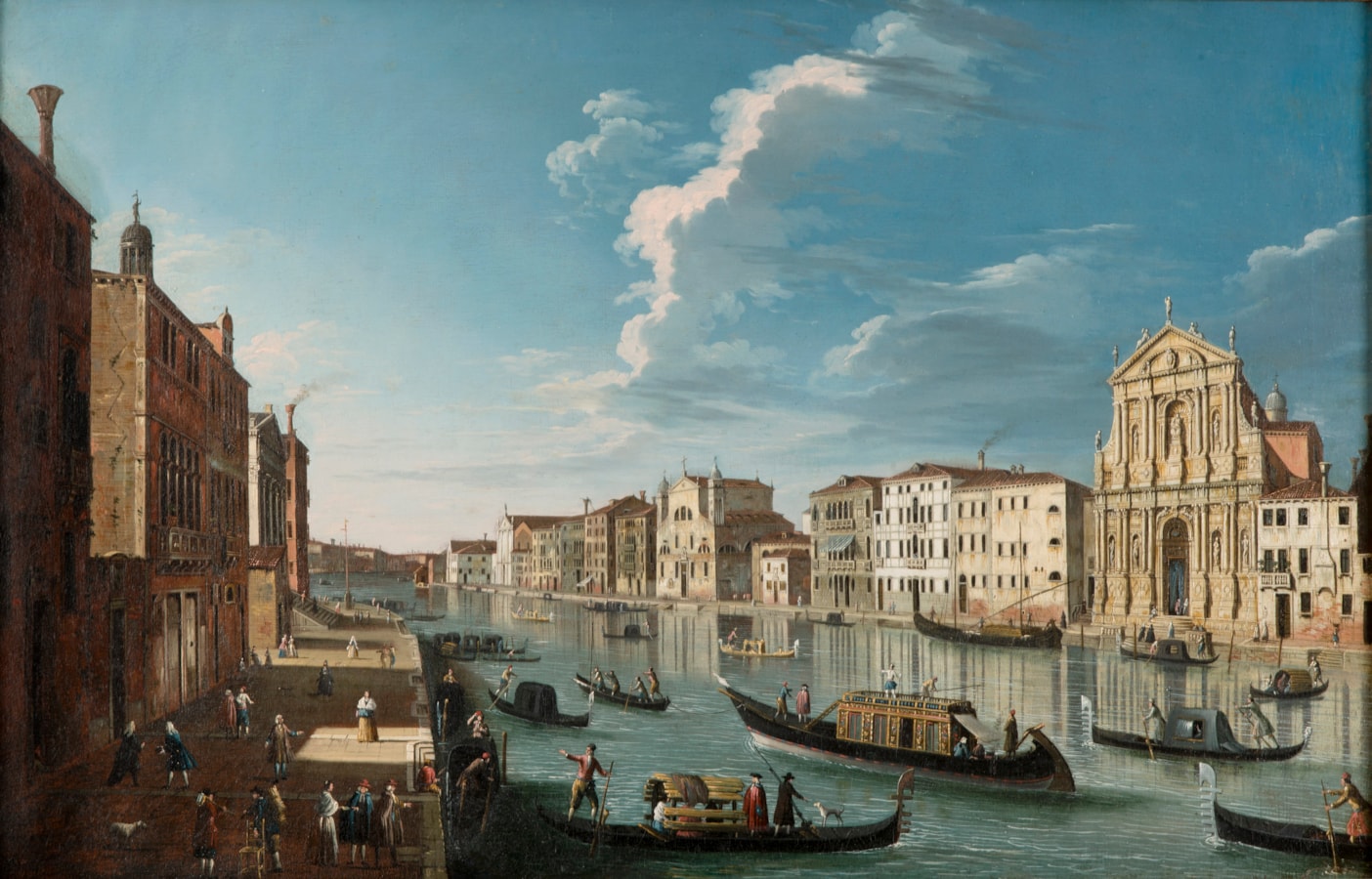 A view of the Grand Canal, Venice, looking North West from the Chiesa degli Scalzi to the Chiesa Santa Lucia.
