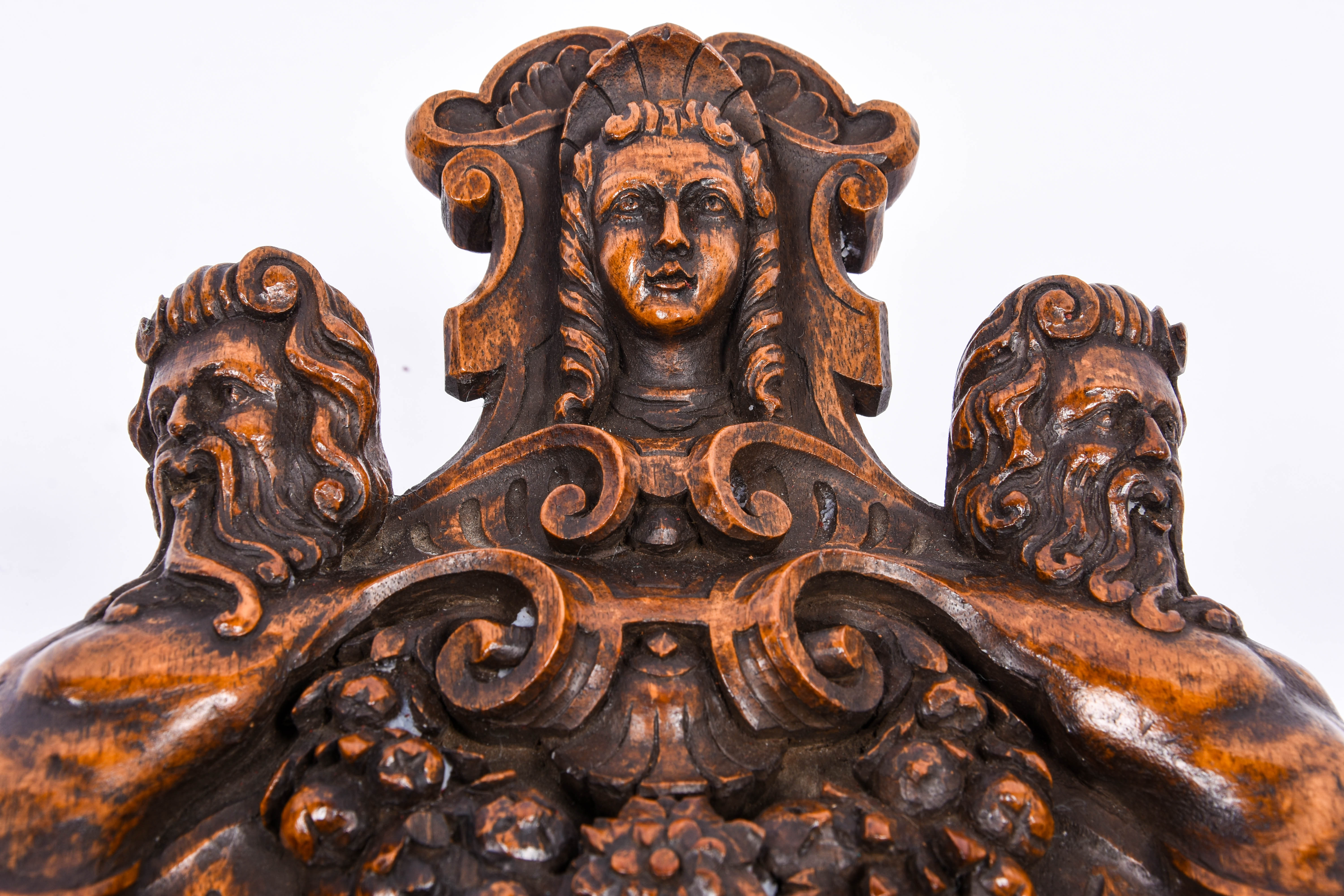 Sculpted wood with mythological figures. Renaissance style.