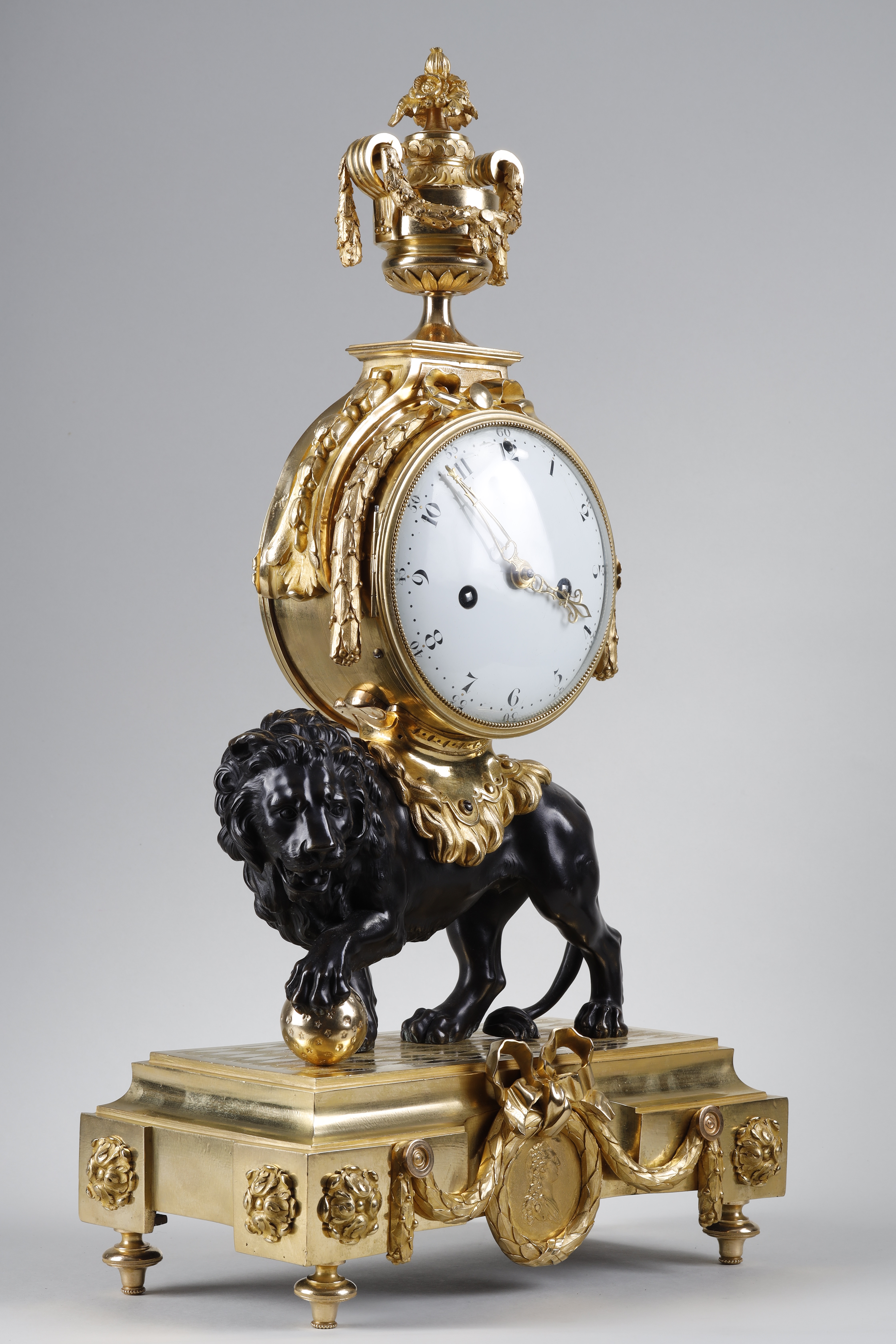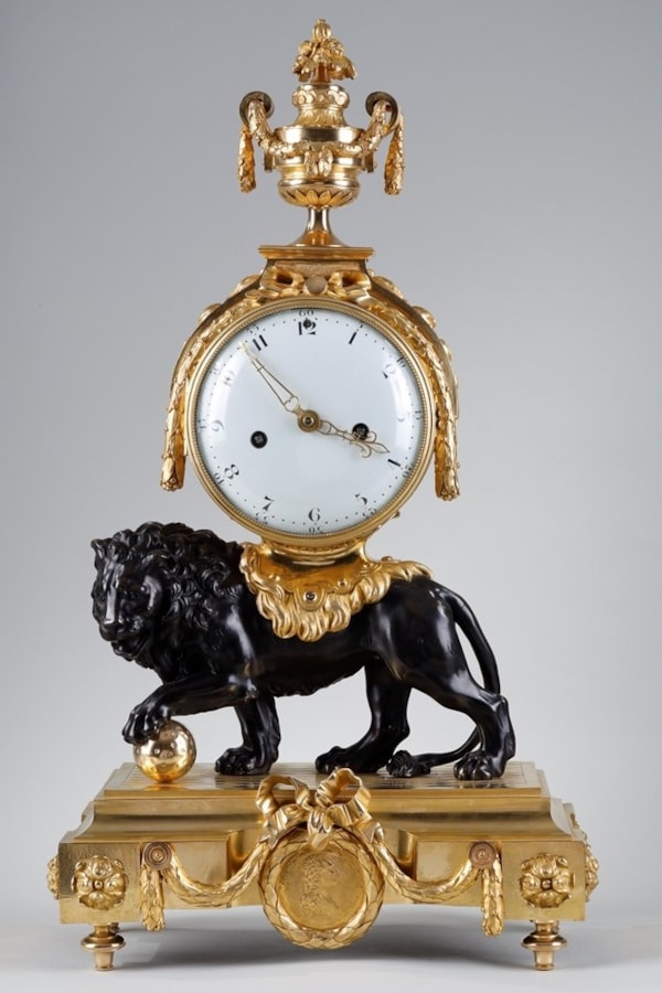 Belangrijke klok met staande leeuw, toegeschreven aan Jean-Joseph de Saint-Germain.